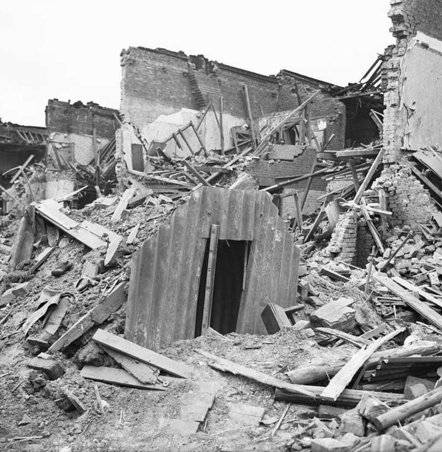 One evening, Dora’s father was already at work at a factory where he worked as a spotter and her mother was out on an errand. Dora and her four siblings had been preparing to head out to the Anderson shelter where they slept every night when the sound of enemy planes came overhead. They hurried a little faster and tumbled into the shelter. Moments later their mother arrived and closed the shelter behind her. Suddenly, a loud roar roared out as high explosive bombs fell nearby.3 A short time later there was an immense explosion close by. The blast's force lifted the front of the Anderson shelter with a blinding light bursting out. The metal sheets from the front of the shelter landed on the ground again and rubble and debris began raining down on the shelter.