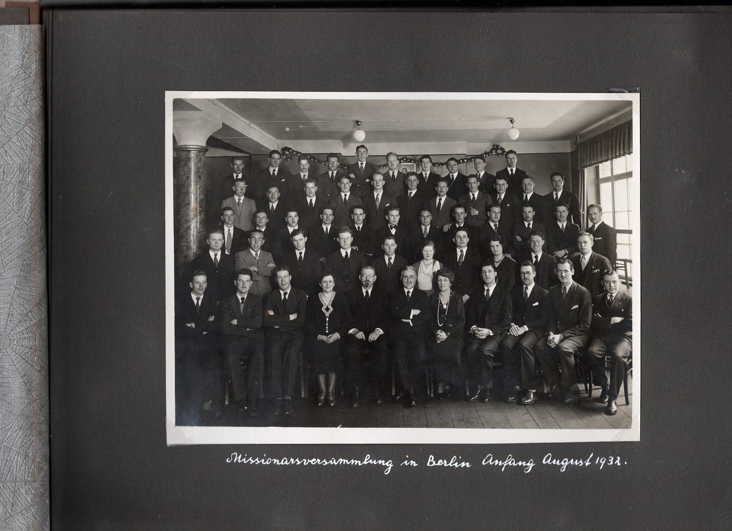 There is a caption under the photograph written in white ink: Missionarsversammlung in Berlin Anflang August 1932. My online translator informs me that it says: “Missionary meeting in Berlin at the beginning of August 1932.” Of course, I wanted and needed to know more about this event.