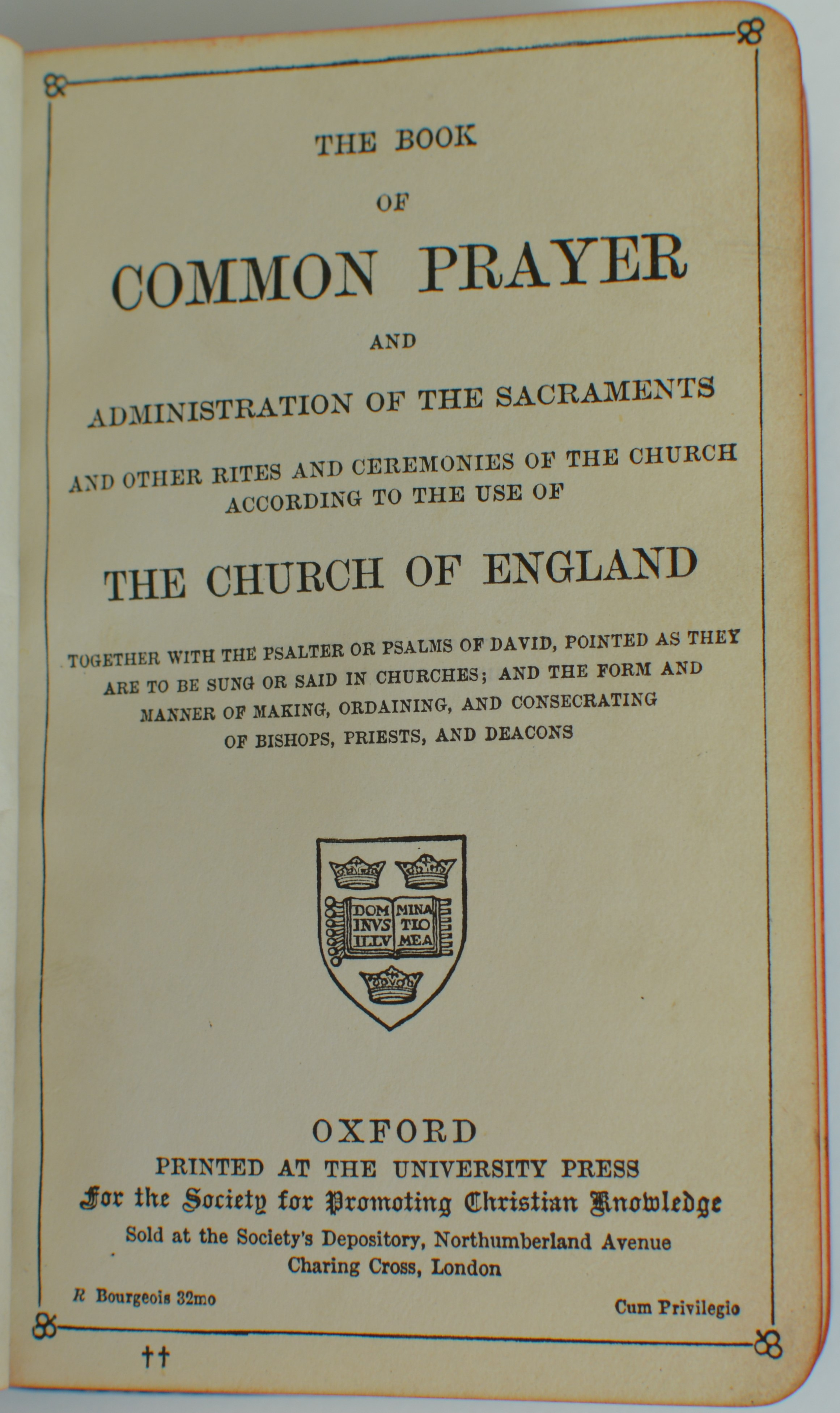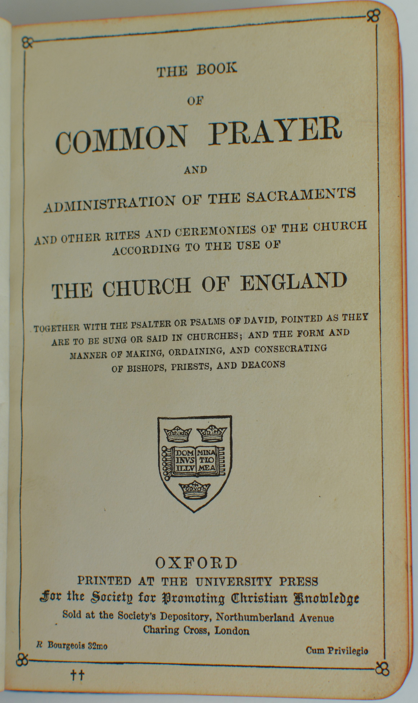 Recently I visited the charming town and found a used bookshop. I popped inside as my wife and daughters shopped for new shoes. With a disgruntled one-year-old in my arms, I browsed the shelves for some new reading material. I must confess that my eyes are always drawn to old books and those with aged covers. In the religion section, I noticed this little gem, The Book of Common Prayer, tucked away among some much larger books.