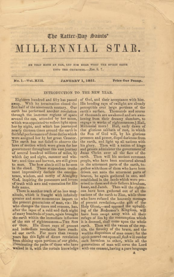 I was able to offer an 1851 issue of The Latter-day Saints’ Millennial Star (which you can read in its entirety here). They eagerly accepted it and earlier this month I took the day off work and travelled down to the town to deliver the magazine. It has been loaned to the museum for a year and if you visit the museum you will have the opportunity to see it alongside items from different faith traditions present in the British Isles.