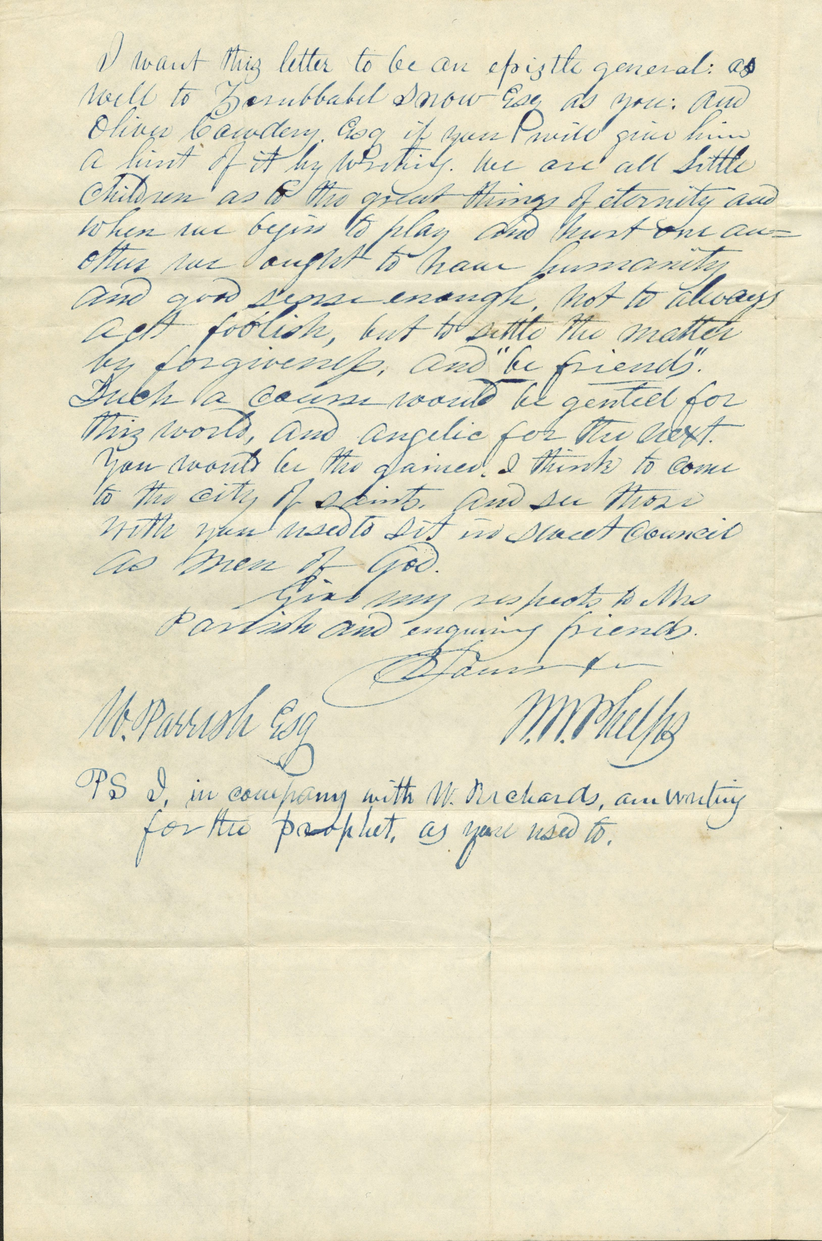PS I, in company with W. Richards, am writing for the prophet, as you used to. [End of page 2]